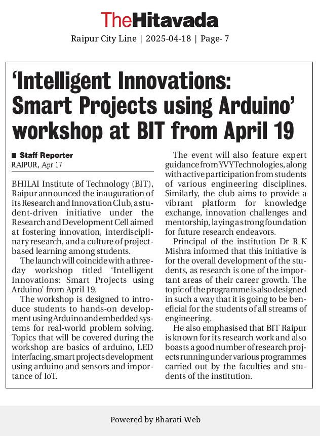 We actively collaborate with reputed educational institutions to deliver industry-oriented training programs that enhance student skills and employability. Our partnerships include colleges and schools such as BIT Raipur, Gurukul Mahila Mahavidyalaya, CG J Yoganandam College, and various JNV schools. Through these collaborations, we conduct hands-on workshops, technical seminars, and live project sessions that focus on Embedded Systems, IoT, Python, and automation technologies. By aligning our training with real-world industry demands, we prepare students to become job-ready professionals with practical knowledge, creative problem-solving abilities, and the confidence to innovate.